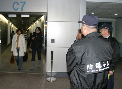 班機(jī)于晚間8時(shí)24分平安降落在桃園機(jī)場(chǎng),航空警察局防爆小組也到機(jī)坪待命,并未有任何情況發(fā)生。