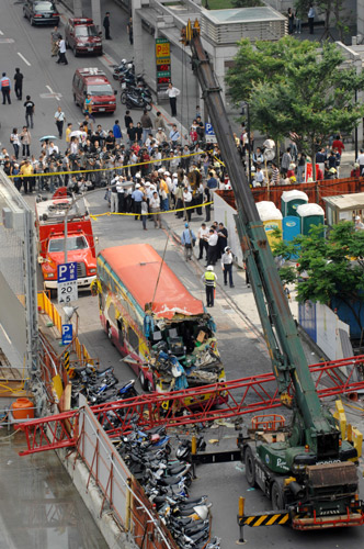 事發(fā)后,臺北市長郝龍斌已親臨現(xiàn)場關(guān)切,負(fù)責(zé)接待的旅行社主管也都趕赴意外現(xiàn)場及醫(yī)院。