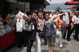 大陸旅游團(tuán)所搭乘郵輪在臺(tái)中港上岸后,轉(zhuǎn)搭四十部游覽車分兩路前往日月潭及中臺(tái)禪寺旅游。上、下午兩批團(tuán)員歷經(jīng)約三十分鐘的游湖賞景后,團(tuán)員在日月潭商圈停留購(gòu)物時(shí)間也拉長(zhǎng)到一小時(shí)以上。