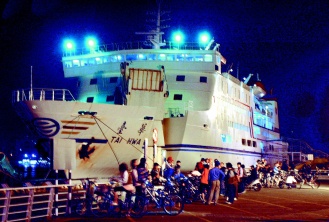 臺華輪船齡十八年,排水八千噸,可搭載一千一百余人,最大航速二十二節(jié),高雄到馬公航程四個多小時,從馬公到廈門要六點五小時至七小時。
