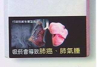 看著一幅幅恐怖的照片,罹了肺癌后整顆黑色的肺、煙管下垂的象征性功能障礙的抽象圖、媽媽抱著哭泣的小孩捂著嘴防止煙味入侵、一口可怖的黃板牙…圖片看來嚇人,為的就是要提醒癮君子,少抽點煙。