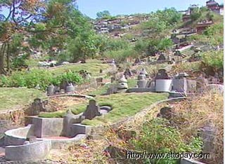 據(jù)臺(tái)灣東森新聞報(bào)道,臺(tái)北縣觀音山區(qū)公墓數(shù)以千計(jì)的往生者在這里安息,墓碑上頭的碑文記載著他們的身份以及來(lái)自何方,這橫書(shū)的兩個(gè)字,就是往生者的祖籍。