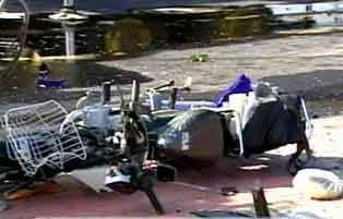 這起車禍發(fā)生在臺(tái)中縣沙鹿鎮(zhèn)中興路與沙田路口,一輛由許姓司機(jī)駕駛的拖板車在行經(jīng)該路口時(shí),突然失控往前沖撞,剛好有多輛摩托車停在路口等紅燈,由于毫無(wú)預(yù)警,4輛摩托車被撞得面目全非。