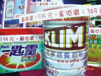 據(jù)臺(tái)灣《聯(lián)合晚報(bào)》報(bào)道,消基會(huì)抽查家樂(lè)福、大潤(rùn)發(fā)等島內(nèi)多家賣場(chǎng),針對(duì)相同商品進(jìn)行比價(jià)。抽查結(jié)果發(fā)現(xiàn),所到38處分店皆有販賣的一種奶粉,同重量、同包裝從369元(新提筆,下同)到535元不等,共有13種不同的價(jià)格,最高與最低價(jià)竟可相差166元,達(dá)1.4倍。