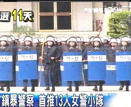 中新網(wǎng)3月11日電 臺灣地區(qū)領(lǐng)導人選舉只剩倒數(shù)11天。為防止任何民眾太過激情而發(fā)生意外,臺灣警政部門特地展示520人組成的鎮(zhèn)暴警隊,首次加入一支女性組成的小隊。