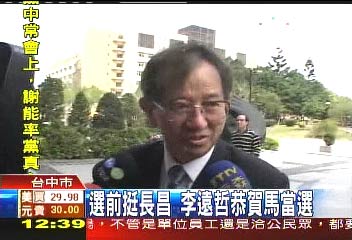 選前曾挺謝長廷 李遠(yuǎn)哲選后恭賀馬英九當(dāng)選