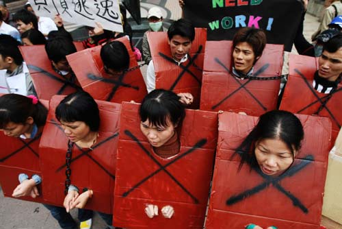 外勞在臺當局“勞委會”門口抗議政策粗糙(圖)
