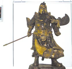 中新網(wǎng)5月6日電 一尊面帶威嚴、與真人一般高的銅制關(guān)公像矗立在臺中縣太平分局,經(jīng)過的人看了,一股正義感油然而生。其實,這尊關(guān)公像是現(xiàn)任分局長郭瑞權(quán)的私人收藏,他說,這么作是藉此提醒大家,要效法關(guān)公的正義之氣。