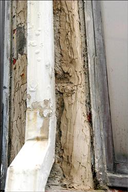 桃園機場塔臺銹蝕的部分僅用膠狀物填補涂覆。 臺灣《自由時報》圖