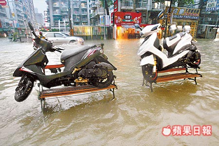 摩托車避難(圖:臺(tái)灣《蘋果日?qǐng)?bào)》)