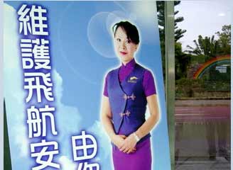 中新網(wǎng)8月1日電 在臺(tái)東縣境內(nèi),縣長(zhǎng)鄺麗貞可說(shuō)是“無(wú)所不在”,一下是推銷臺(tái)東米的農(nóng)婦,一下又成了飛行傘教練,轉(zhuǎn)個(gè)身又看見(jiàn)她拿著釋迦在對(duì)你微笑;進(jìn)出臺(tái)東機(jī)場(chǎng)好幾次,有一次才突然驚覺(jué),以前對(duì)著旅客微笑,“注意飛安”的那個(gè)與人等高的廣告牌空姐,竟然也是鄺麗貞。