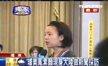 據(jù)臺(tái)灣TVBS報(bào)道,來(lái)自臺(tái)灣代表澳門(mén)電視媒體發(fā)問(wèn)的璩美鳳,現(xiàn)身在廣東深圳舉行的第十屆高交會(huì)新聞發(fā)布會(huì)上,打破了沒(méi)有續(xù)約的傳聞,頭上戴有千萬(wàn)年薪光環(huán)的璩美鳳一發(fā)問(wèn),立刻引起其它媒體的注意。