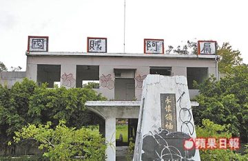 臺軍位于臺北的一處廢棄營區(qū)指揮部大樓上標(biāo)語牌,遭人以油漆寫上“‘國賊’阿扁”。 (圖:臺灣《蘋果日報》)
