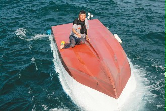 中新網(wǎng)10月21日電 臺北縣貢寮鄉(xiāng)澳底七十一歲的老漁民,20日凌晨獨自駕舢舨出海,遇上“瘋狗浪”翻船,他把自己綁在翻覆的舢舨上漂流八小時,遇上正好出海的澳底海巡隊巡防艇,幸運獲救。