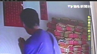 男子偷竊過程,好幾次朝神像看了看,也隨時注意門口有沒有人走進來,直到拿完香油錢后,他又站到土地公前面,再次拜拜。記者:“他是在答謝還是心虛?”廟方人員:“可能是心虛吧!”