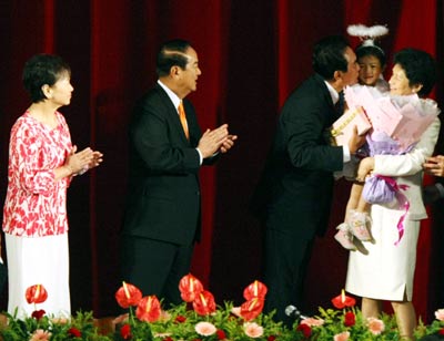 小喻安目前已是健康可愛(ài)的小女娃,陳朝福應(yīng)親民黨主席宋楚瑜的邀請(qǐng),帶著小喻安出席中午在圓山飯店的宴會(huì)場(chǎng),手持鮮花花束,當(dāng)面向陳云林、賴(lài)曉華伉儷表達(dá)感謝,賴(lài)曉華忍不住抱起穿著白色小公主裝的小喻安,陳云林也在旁輕輕拍著小喻安,場(chǎng)面相當(dāng)溫馨。