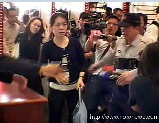 陳幸妤發(fā)飆大吼,指責(zé)媒體攝影機(jī)打到頭。(臺灣TVBS)