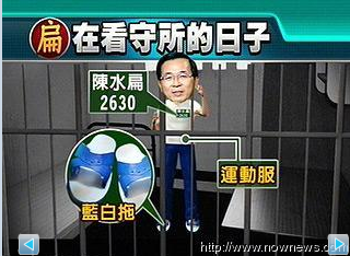 陳水扁意氣風發(fā)不再,“2630”換囚衣與藍白拖鞋。圖片來源:臺灣“今日新聞”