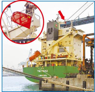 基隆港務(wù)警察局調(diào)查,陽(yáng)明海運(yùn)公司承租的9000噸、塞浦路斯籍“YM FA HA”貨輪19日從香港載貨后,清晨駛?cè)牖「,停泊東八碼頭卸貨。