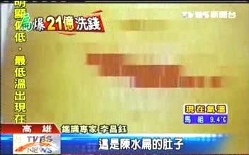 鑒識(shí)專家李昌鈺:“這是陳水扁的肚子,當(dāng)時(shí)我看肚皮的時(shí)候,沒有知道他貪了那么多錢,陳水扁我見過幾次面,但是我沒有想到,就是一個(gè)人貪污了這么多錢財(cái),我心里也是很難過!