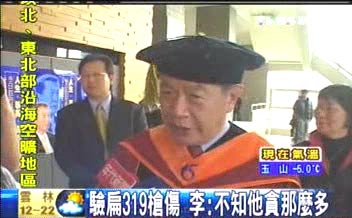 發(fā)表評(píng)論  中新網(wǎng)12月6日電 據(jù)臺(tái)灣TVBS報(bào)道,國際知名鑒識(shí)專家李昌鈺博士5日前往臺(tái)灣正修科大接受名譽(yù)博士學(xué)位,還特地發(fā)表專題演講,對(duì)于扁家傳出洗錢弊案,李昌鈺說當(dāng)初他鑒識(shí)陳水扁319槍傷時(shí),沒想到他會(huì)貪那么多錢,對(duì)此他深感難過。