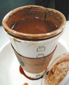 中新網(wǎng)12月11日電 據(jù)臺(tái)灣《聯(lián)合報(bào)》報(bào)道,有顧客指出在臺(tái)灣星巴克購(gòu)買的咖啡,喝下后感到反胃想吐,咖啡散發(fā)惡臭,杯身還軟化變形,事后星巴克坦承咖啡中含有濃縮清潔劑。該顧客要求求償新臺(tái)幣300萬。