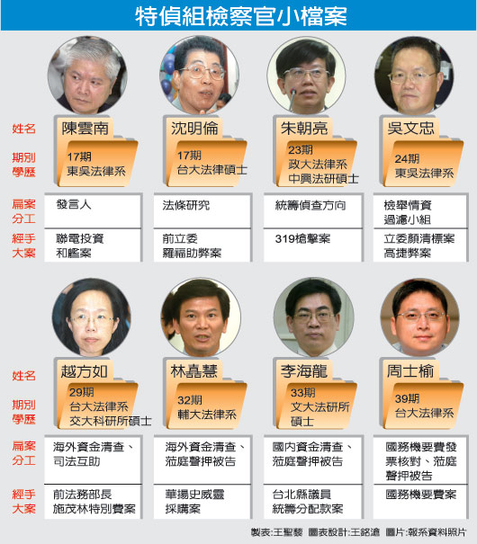 特偵組偵辦扁案,超越過(guò)去分組辦案模式,包括主任陳云南、檢察官沈明倫、朱朝亮、吳文忠、越方如、林(吉吉吉)慧、李海龍、周士榆等8人共同納入項(xiàng)目小組,協(xié)同辦理這件世紀(jì)大案。