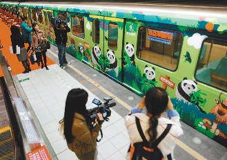 趁著熊貓熱,臺北市觀光傳播局也特別打造“捷運(yùn)熊貓列車”,每節(jié)車廂外有臺灣黑熊、長鬃山羊、梅花鹿等十二種保育類動物,以及六只可愛熊貓圖案,預(yù)計(jì)將行駛至明年三月二十五日。