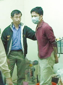 正在制毒的藥劑師謝某(圖右)被逮捕。(來源:臺灣《中國時報》)