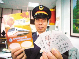 吳宏男說,去年燈會在臺南舉辦,吸引鐵道迷排隊(duì)搶購紀(jì)念車票,賣出上萬套,今年燈會在宜蘭,宜蘭站先行印制5000套名片式紀(jì)念車票,已有不少人打電話來詢問。去年底他們配合東部永續(xù)發(fā)展博覽會,發(fā)行宜蘭到南澳單張紀(jì)念車票,有人一開口就要100套,一下子就賣完了,紀(jì)念車票搶手程度可想而知。