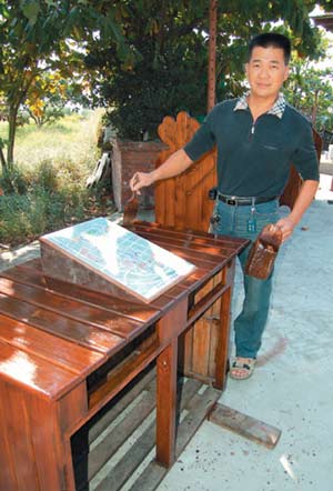 郭水發(fā)考上清潔隊(duì)后,剛好鹿港鎮(zhèn)長(zhǎng)王惠美有意推動(dòng)回收舊家具再利用工作,喜歡動(dòng)手動(dòng)腦的他與隊(duì)員們重新裁切舊家具、再加工,做出了叫好叫座的板凳、信箱等,變成鹿港公所推廣的“伴手禮”,鹿港游客中心買(mǎi)得到。