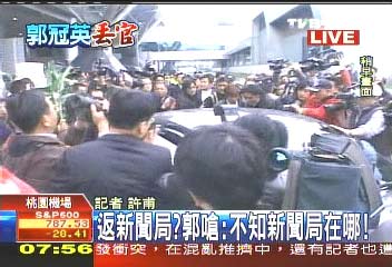 據(jù)臺(tái)灣媒體消息稱,在郭冠英出關(guān)后,有二三十名黑衣男子自稱是“統(tǒng)一促進(jìn)黨”的人員,在現(xiàn)場(chǎng)圍起人墻護(hù)送郭冠英上車,而抗議人群不斷高喊要郭冠英道歉、認(rèn)錯(cuò)的口號(hào),雙方一度爆發(fā)推擠沖突,連記者也受到波及。