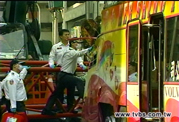 游覽車上坐著25名旅客,他們來自廣東東莞,來臺進行6天旅游,今天進行到第5天行程,當時他們用完午餐打算前往101參觀,沒想到意外從天而降,游覽車車體嚴重變形。游客李福慶當場死亡,王炳坤在送醫(yī)途中不治,張世洸用葉克膜急救下目前已經(jīng)有生命跡象,也受傷的王佩琳聽到了堂哥王炳坤死訊,痛哭不已。