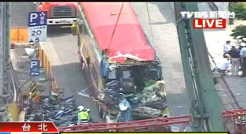 臺(tái)北市消防局表示,下午1時(shí)54分松高路19號(hào)工地發(fā)生起重機(jī)吊臂掉落,砸中1輛停在路旁、載著25名大陸游客的游覽車尾端,目前傷者已經(jīng)送醫(yī)急救。