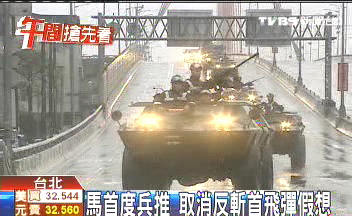 凌晨5點,天色才剛亮起,負責保衛(wèi)博愛特區(qū)的憲兵202指揮部大批甲車緩緩開出,第二輛六輪甲車正是到中興寓所護送馬英九的萬鈞車,這是馬英九上任后,首度主持兵推。