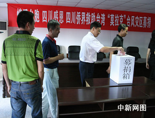 中新網(wǎng)成都8月18日電(王萌 陳典路)“去年四川地震后,臺灣同胞紛紛慷慨解囊,幫助我們度過了最艱難的日子;現(xiàn)在,臺灣同胞遭受臺風(fēng)肆虐,華夏兒女同根同源,我們義不容辭獻出愛心,用大愛撐起抗災(zāi)的力量,用信念幫助受災(zāi)的臺灣同胞!彼拇ㄊS辦主任周敏謙率先將捐款放入捐款箱,拉開了四川僑界“情系臺胞、四川感恩、救助臺灣‘莫拉克’臺風(fēng)災(zāi)區(qū)募捐”儀式的序幕。