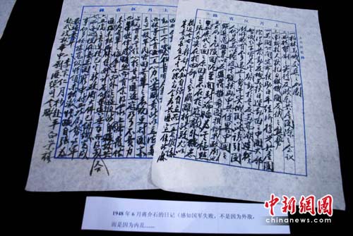 中新網(wǎng)重慶5月11日電 (孟幻)11日,紅巖革命歷史博物館展示了其從美國(guó)抄回的蔣介石日記。據(jù)稱,這些日記為首次在大陸曝光,將有利于近代史實(shí)的完善和補(bǔ)充。
