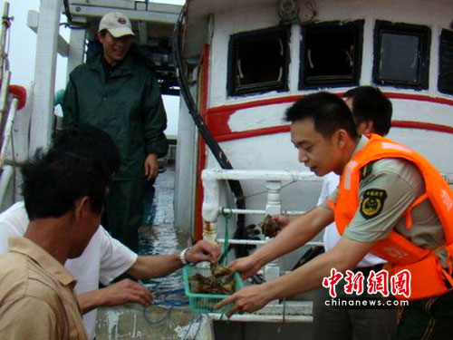 中新網(wǎng)惠安6月15日電 (林永傳 郭斌 陳群峰)“嗯……好吃,跟臺灣的口味差不多,謝謝你們邊防民警……”15日,福建崇武邊防派出所官兵為來轄區(qū)港口靠岸避風(fēng)雨的19名臺胞送上了“閩南肉粽”,受到了臺胞的熱烈歡迎。