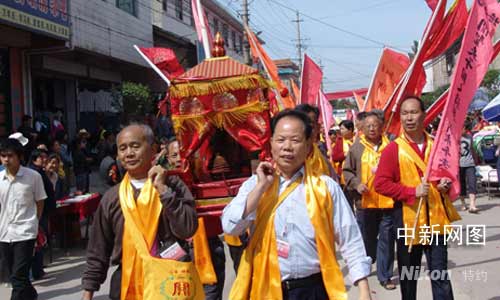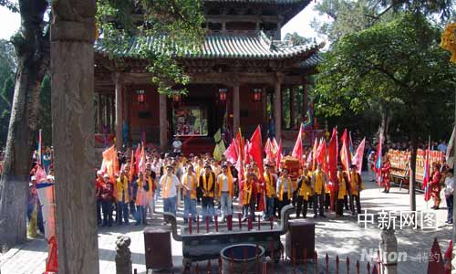 中新網(wǎng)5月14日電 (王鐵成 李旭鵬)農(nóng)歷四月初八,是山西運(yùn)城市解州鎮(zhèn)古廟會(huì),也是位于解州的關(guān)帝祖廟舉辦“關(guān)帝巡城”活動(dòng)之日。當(dāng)天上午,關(guān)帝圣像在鑼鼓、令旗開道下,在來(lái)自福建等地及當(dāng)?shù)匦磐降拇負(fù)硐,乘十六抬大轎巡游解州古城,所到之外,香煙裊裊,鞭炮起鳴,民眾紛紛頂禮膜拜。正在山西平遙拍攝《大陸尋奇—山西篇》的臺(tái)灣中國(guó)電視公司與中國(guó)華藝音像實(shí)業(yè)有限公司一行六人也聞?dòng)嵡皝?lái),趕制專題節(jié)目。