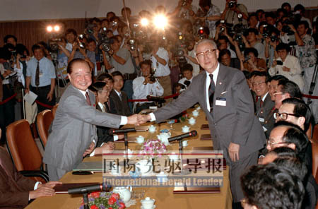 成立之初,可說是兩會協(xié)商的小陽春。海協(xié)會首任會長汪道涵和海基會首任董事長辜振甫,不僅達成“九二共識”,還建立了兩會定期之制度化協(xié)商機制。新加坡、上海、北京,處處留下兩會協(xié)商的身影。但經(jīng)1996年臺海危機以及1999年的“兩國論”事件,兩會協(xié)商被臺灣當局惡意中斷。2005年,辜汪二老先后辭世,留下永生的遺憾。