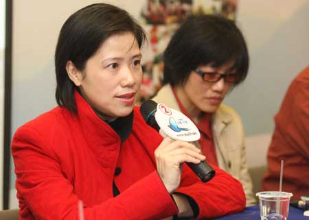 嫁到臺(tái)灣的大陸配偶袁小姐(左)二十九日在馬英九蕭萬(wàn)長(zhǎng)競(jìng)選總部表示,謝長(zhǎng)廷的“豬哥”說,讓她非常擔(dān)心小朋友就學(xué)后會(huì)不會(huì)受到異樣的眼光,希望政治人物要謹(jǐn)言慎行!爸醒肷纭眻D 謝佳璋 攝