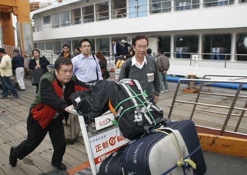臺(tái)灣地區(qū)領(lǐng)導(dǎo)人選舉前夕,金門(mén)小三通航線十九日受濃霧影響,中午過(guò)后才通航,水頭碼頭涌現(xiàn)搭船入境旅客,大多是返鄉(xiāng)投票的臺(tái)商。(“中央社”圖;倪國(guó)炎/攝影)