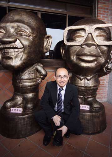 組圖:潘石屹參訪后慈湖與兩蔣玩偶合影