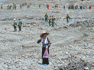 中新網(wǎng)8月18日電 臺灣海軍陸戰(zhàn)隊(duì)中被稱為“黑衣部隊(duì)”的特勤部隊(duì),在高雄縣那瑪夏鄉(xiāng)受創(chuàng)最重的民族村救災(zāi),因挖土機(jī)無法挺進(jìn),他們以鼻嗅聞,拿鏟子、臉盆,一鏟一鏟地接力開挖,先后找到三具遺體。