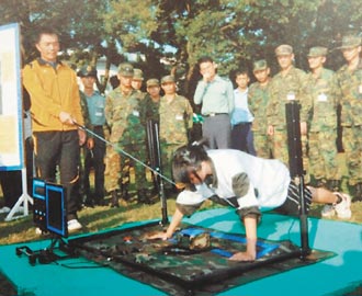 軍方早已預告要以電子檢測器測評分,不過見過這套儀器的還不多;看到圖片中的女兵超標準動作,還有無法判斷的檢測器合格高度,很多人擔心,今年體測會毀在本應輕松過關的動作上。