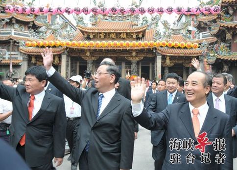 6日,福建省經(jīng)貿(mào)文化交流團臺灣之行第二天。交流團的重頭戲,一是與合作伙伴做生意,加強兩岸經(jīng)貿(mào)合作,二是到臺中縣大甲鎮(zhèn)瀾宮拜謁媽祖、上香祈福。