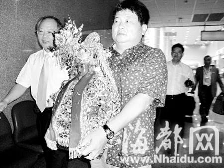 昨天早上,大甲鎮(zhèn)瀾宮董事長顏清標(biāo)前往臺中港送行,并抱著媽祖神像陪同上船;此次恭請包括大甲鎮(zhèn)瀾宮、桃園慈護(hù)宮及云林縣麥寮拱范宮共三尊媽祖前往湄洲祖廟進(jìn)香,并將配合舉行媽祖文化周活動。鎮(zhèn)瀾宮還將代表臺灣媽祖信眾,在論壇期間提出一系列促進(jìn)民間文化交流的建議,包括將邀請大陸北方的戲劇表演團(tuán)體到臺灣進(jìn)行演出活動。 (記者 楊陽)