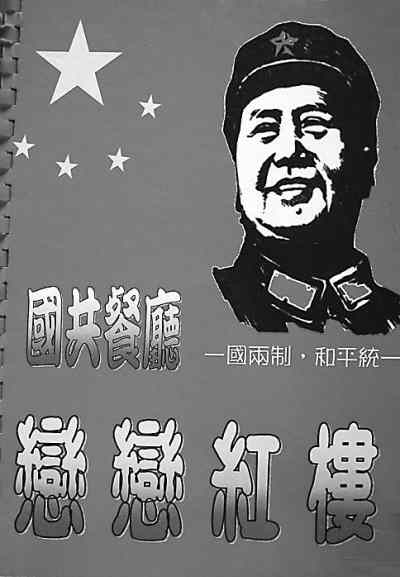 我在金門旅游時(shí),幾位年輕的郵友帶我來(lái)到金門老街。這條老街據(jù)說(shuō)已經(jīng)有幾百年的歷史了,大部分店鋪都保存著原有的風(fēng)貌。這些店鋪主要經(jīng)營(yíng)當(dāng)?shù)氐耐撂禺a(chǎn),比如金門貢糖、金門高粱酒、金門牛肉干、金門陳皮果,還有金門菜刀等,店鋪也像古代的酒店一樣,旗幡當(dāng)街飄揚(yáng),兩旁一盆盆的鮮花清香四溢,酒香花美,街道中央不時(shí)能看到百年的榕樹(shù),盤根錯(cuò)節(jié)。海風(fēng)陣陣,這真是濤聲依舊,又見(jiàn)千年的滄桑,百年的風(fēng)雨,令人心曠神怡,不知今夕何夕。信步走來(lái),我們想找個(gè)地方歇歇腳,喝喝咖啡。抬頭一看,前面“國(guó)共餐廳”4個(gè)大字極為醒目,紅旗飄揚(yáng),“走進(jìn)新時(shí)代”的歌聲清脆悅耳。我想:此時(shí)竟在何方,難道我們現(xiàn)在是在大陸嗎?難道國(guó)共雙方的代表曾在這里見(jiàn)過(guò)面嗎?我們帶著好奇心走進(jìn)了餐廳,美麗的小姐說(shuō)著流利的普通話,熱情地歡迎我們,請(qǐng)我們?nèi)胱,為我們沏茶,而且馬上遞給我們一個(gè)菜譜。這菜譜一看,全是紅色,著軍裝的毛澤東像赫然在目,還有“一國(guó)兩制,和平統(tǒng)一”的口號(hào),還印著五星紅旗。打開(kāi)菜譜一看,有不少大陸的名菜,也有毛澤東喜歡吃的紅燒肉、臭豆腐,真是令人激動(dòng)!