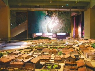 2樓望安鄉(xiāng)中社村模型以30比1的比例壯觀呈現(xiàn)花宅古聚落全貌,在文史任務(wù)者曾文明指導(dǎo)下,模型里每一座古厝與街景都經(jīng)過(guò)考證與實(shí)景相符,澎湖縣文化局長(zhǎng)曾慧香形容這是“世界級(jí)”的古聚落模型。