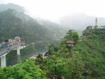 大約10分鐘,就爬上了觀音臺。觀音臺立有一座四十尺高,以青銅鑄造的觀音圣像,下方另一平臺,有一圓頂?shù)牡钐茫敕钣^音神像。觀音臺上,居高臨下,眺望遠近山水,俯瞰坪林聚落,景色怡人。觀音臺步道沿途亦無遮蔭,陰涼天氣或雨中來訪皆宜,惟不宜艷陽高照日。